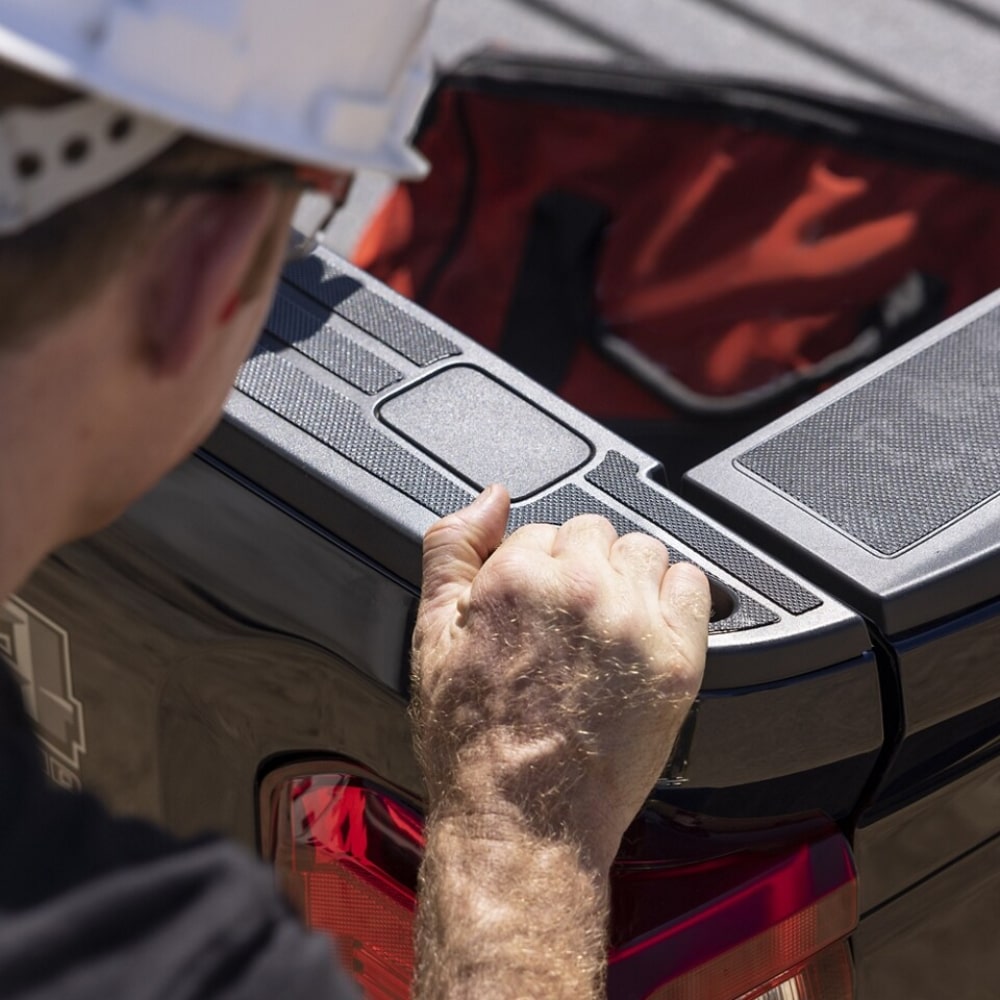 With the Ford Super Duty by your side, downtime becomes a thing of the past. Equipped with Pro Power Onboard, you can power essential tools and equipment, even in remote locations where outlets are scarce. Whether it’s running your air compressor or miter saw, the Super Duty provides up to 2.0 kW of built-in power, ensuring you stay productive wherever your work takes you. Plus, with its spacious interior and innovative Work Surface, this truck doubles as your on-site office, offering ample room to plan, sign documents, or work on a laptop—perfect for the traveling worker on the move.