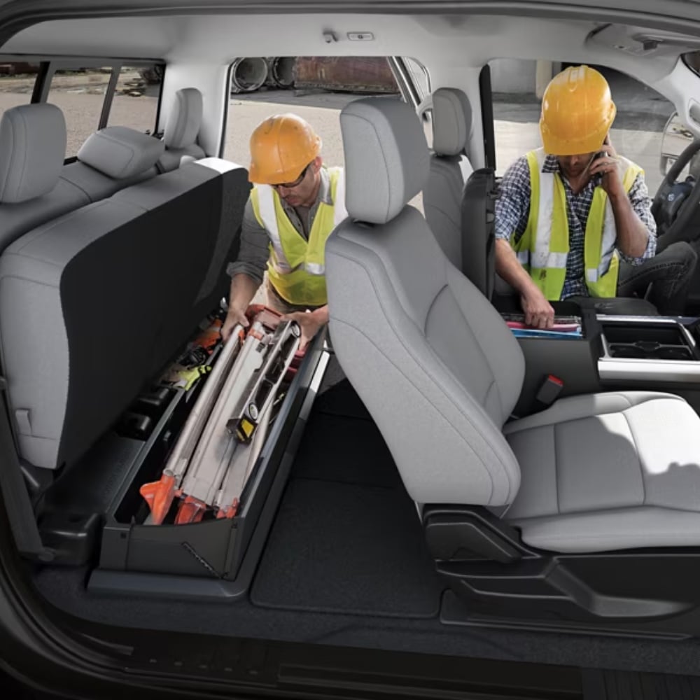 The Super Duty Chassis Cab delivers serious power with a maximum payload of 15,140 lbs and a GCWR of up to 43,500 lbs. Built with heavy-duty axles, 19.5-inch tires, and available high-capacity towing, it’s ready for your toughest jobs. Advanced systems like AdvanceTrac® with Roll Stability Control™ help keep you in control, while available locking storage secures your gear and keeps the cabin organized.