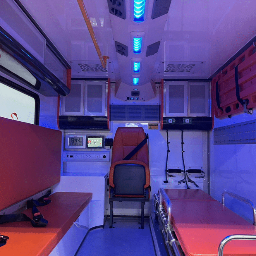 The Ford Ranger ERV Ambulance Box Truck features a robust ambulance box structure crafted from lightweight yet durable aluminum or fiberglass to withstand challenging operating environments. Inside, the patient area is designed for both functionality and comfort, with ample space for medical attendants to work efficiently. It comes equipped with essential medical tools, including a stretcher with a secure mounting base, overhead storage cabinets for critical supplies, and emergency LED lighting for optimal visibility. This design ensures that medical teams have everything they need to provide care on the go, even in the most challenging and remote locations.
