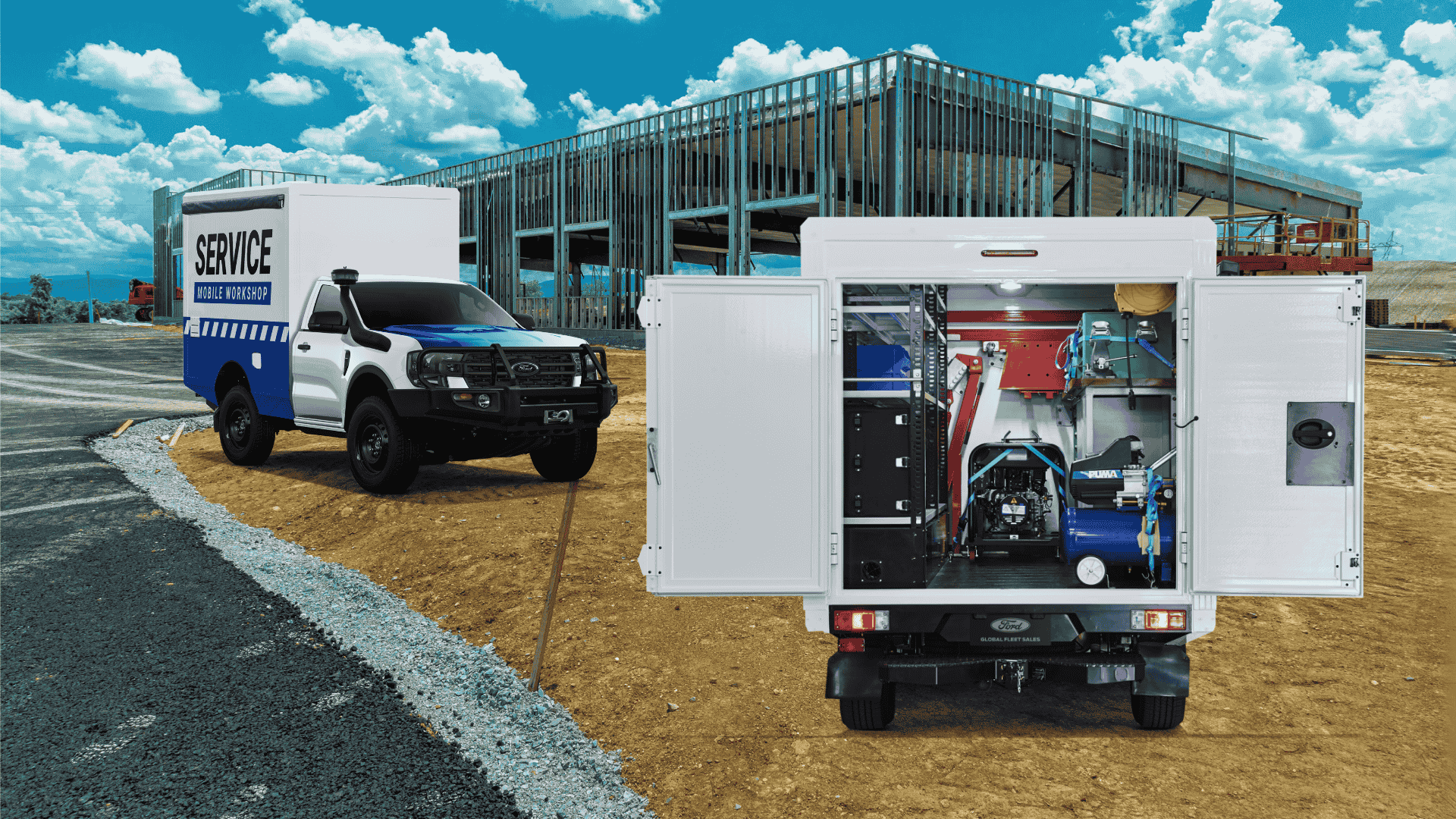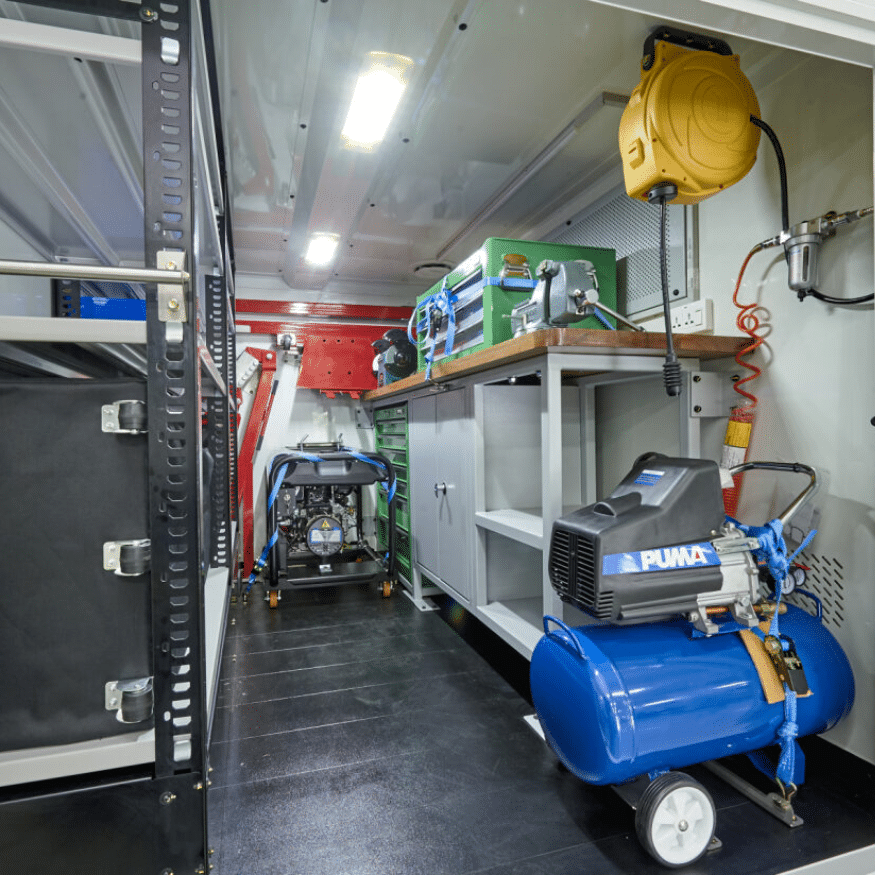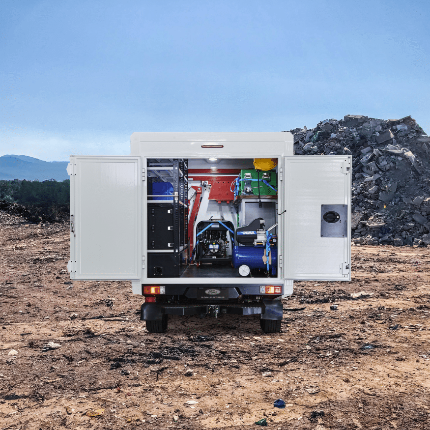 The Ford Ranger Workshop offers unparalleled customizability, allowing FGFS customers to tailor the vehicle to their specific needs and tasks. Internally, the workshop cabin can be configured with various storage solutions and an integrated workstation. At the same time, externally, accessories such as roof racks and toolboxes can enhance its utility. This flexibility ensures that construction workers and professionals in various industrial industries can optimize efficiency and functionality, adapting the Ford Ranger Workshop to the unique demands of any job or project with ease.