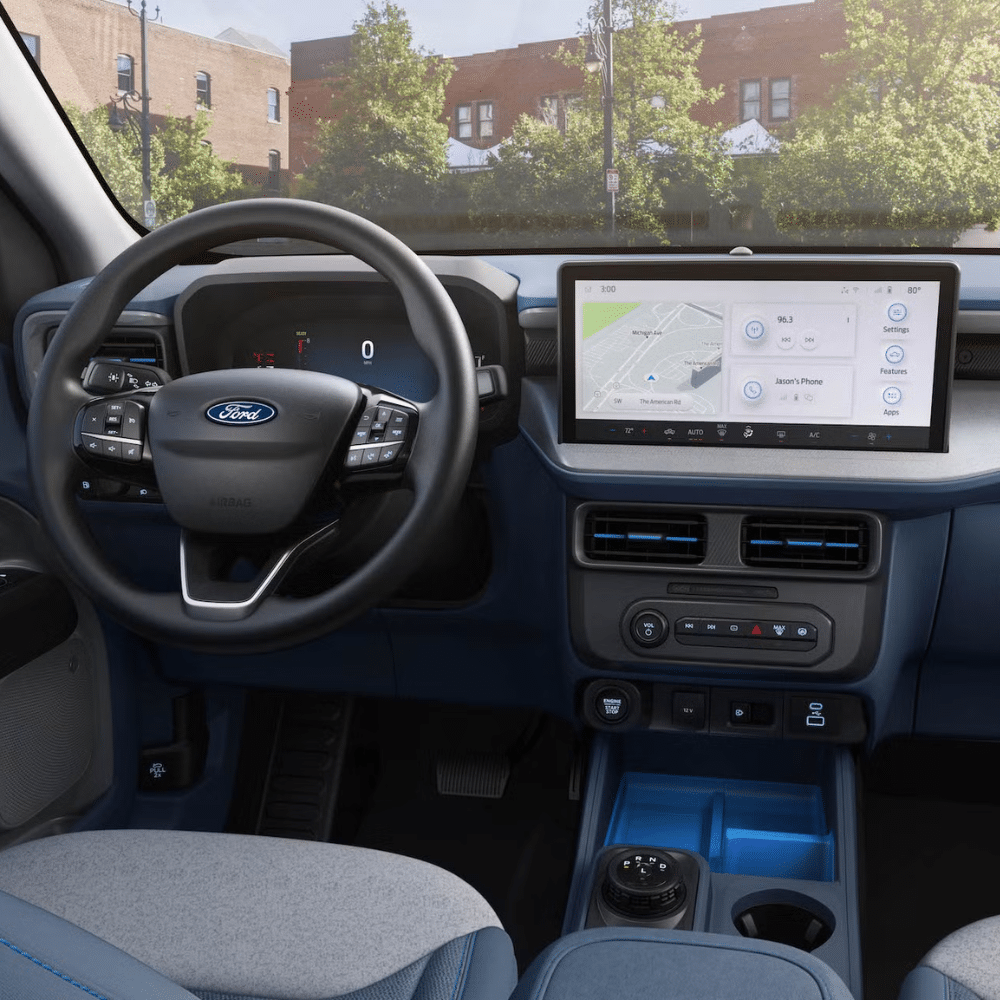 Designed with fleet efficiency in mind, the Maverick seats up to five in a practical, driver-focused cabin featuring available premium seating and a power moonroof for added light and ventilation. Integrated under‑seat bins and custom door pockets keep tools and work gear neatly organized.